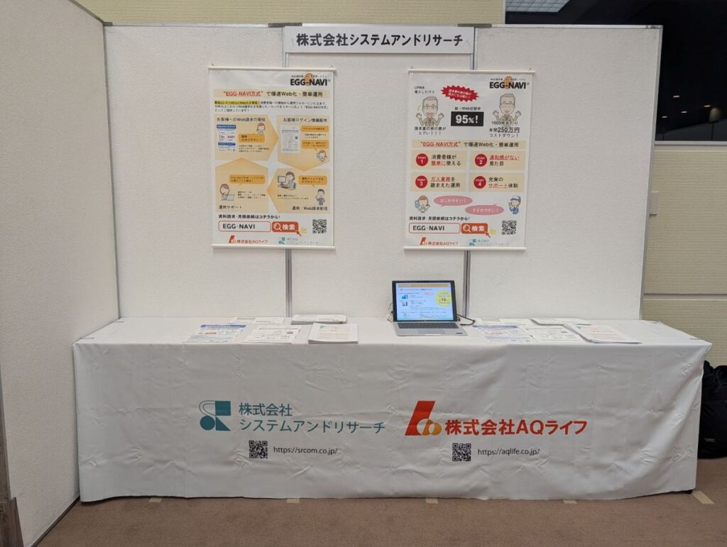 今回のブースでは、業務管理システム、ポータルサイト「EGG-NAVI」を展示した他、セミナーでは「EGG-NAVIを活用したコスト削減のご提案 ~Web検針・請求書選定のポイント~」をプレゼンさせていただきました。